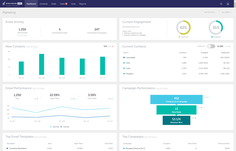 BenchmarkONE’s simple to use, all-in-one marketing software helps businesses focus on driving new, inbound business and incorporates small business CRM, email nurturing, marketing automation and more. Oh, and did we mention we were simple to use? Quit paying just to learn how to use a new system and hop right in the driver’s seat.